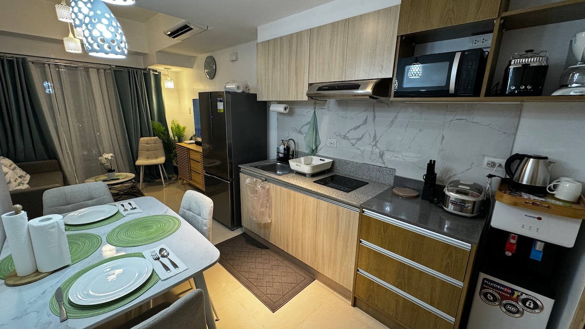 專為舒適方便設計 盡情享受位於 Abreeza 購物中心旁邊、設備齊全的單間公寓,非常適合商務人士、宅度假或機場中轉停留。 Aurora Haven 有哪些與眾不同之處? •室 內洗衣機 • 全套烹飪必要用品 + 調味料 • 冷氣 + 無葉片電扇 • 可使用 Netflix • 厚實的床墊 + 酒店級品質的床單 • 免費牙科用品和洗漱用品 • 提供室內拖鞋 • 蒸汽熨斗和吹風機 • 應急箱和縫紉包 • Honesty 迷你零食店