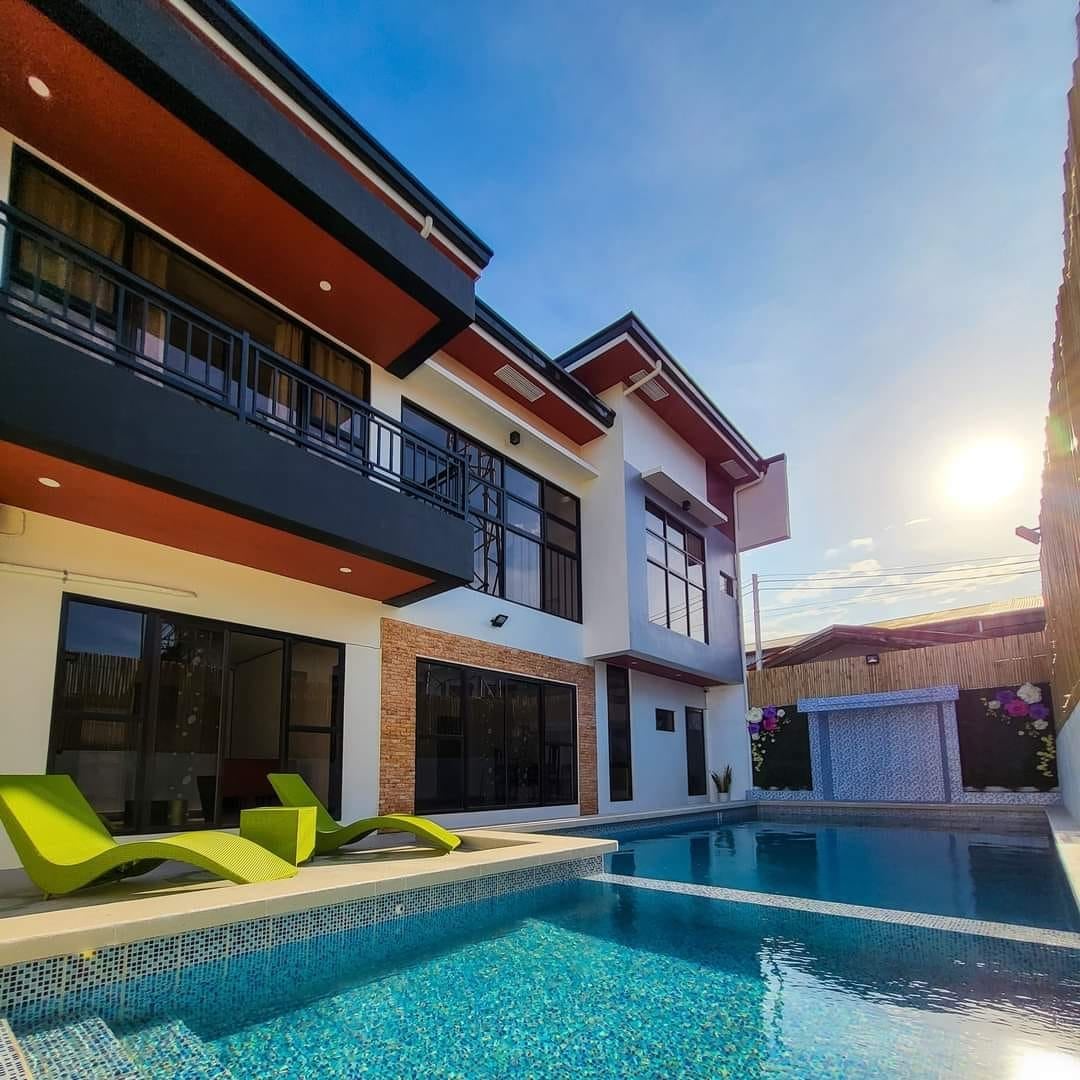 Celebrate any occasion w/ resort vibes in the city 🌴 Private pool, garden, friendly farm animals & Balinese-style pool house w/ bar & BBQ 🏊🌺 3BR Fully Air-Conditioned Villa ❄️ Cool comfort year-round. Cozy beds w/ Smart TV & streaming (Youtube. Netflix, Prime, HBO & Disney) 🛏️~₱1,000+ per guest (10 guests, max 12 Airbnb fees apply) ~₱800 cleaning fee per clean (based on stay length)~3 parking slots 🚗 Most essentials provided✨️ Let’s host you soon 🫶 Book now before dates fill up this☀️🌞🎉