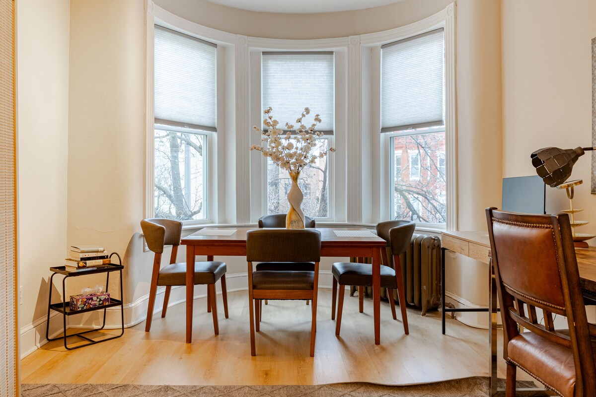 全新裝修的1200平方英尺公寓,位於時尚的洛根圓環中心。光線充足、溫暖的木地板、新家具、私人單位,位於1898年建造的歷史悠久的排屋一樓,有開放式樓層。 距離第14街的餐廳、咖啡廳、酒吧、劇院和LGBTQ夜生活僅一個街區。Whole Foods、CVS、Trader Joe 's、Dupont Circle和U St街區、地鐵站,都在幾步之遙。 搭乘計程車/地鐵/步行即可抵達國家商場、會議中心和觀光景點。