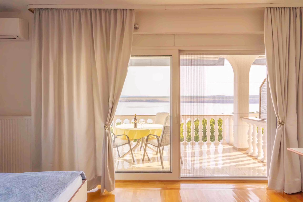 Luxury furnished apartment with all the necessary equipment and more (love kayaking?), The Captain's jewel offers perfect relaxation right by the sea. You will enjoy different sunset views from your balcony every night and be awaken by the sound of the sea. The apartment can host 4 people and it has one bedroom, living room, kitchen and dining room, 1 toilet and a balcony. Next to the island of Krk and airport. Free public parking just behind the building.