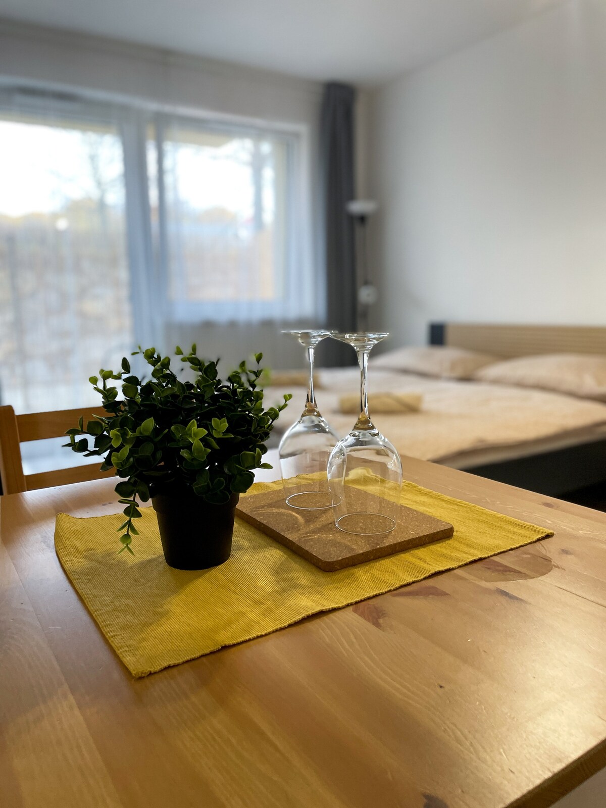 新建房屋中的公寓,配有陽臺,院子內有停車位。適合遊客運動。步行10分鐘即可抵達網球俱樂部。 全新裝潢:雙人牀、折疊沙發、衣櫃、抽屜、餐桌、快速網路、設備齊全的廚房、冰箱、廚具、水壺、微波爐。 浴室配有浴缸+洗衣機。窗戶朝向院子。 為兒童準備玩具和棋盤遊戲。