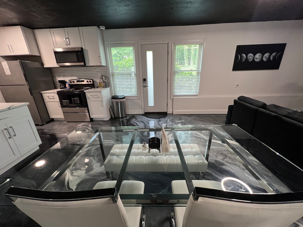 Modern first floor apartment with private entrance in a quiet Snellville, GA neighborhood. Full kitchen, open concept dining room and living room with electric fireplace and pull out sofa bed. Luxury memory foam bed to rest with a private outdoor terrace. - Guests: Maximum of 2 guests allowed - Parties/Gatherings: NOT allowed - Pets: Allowed, but NOT to be left unattended - Children: Apartment is NOT suitable for children.