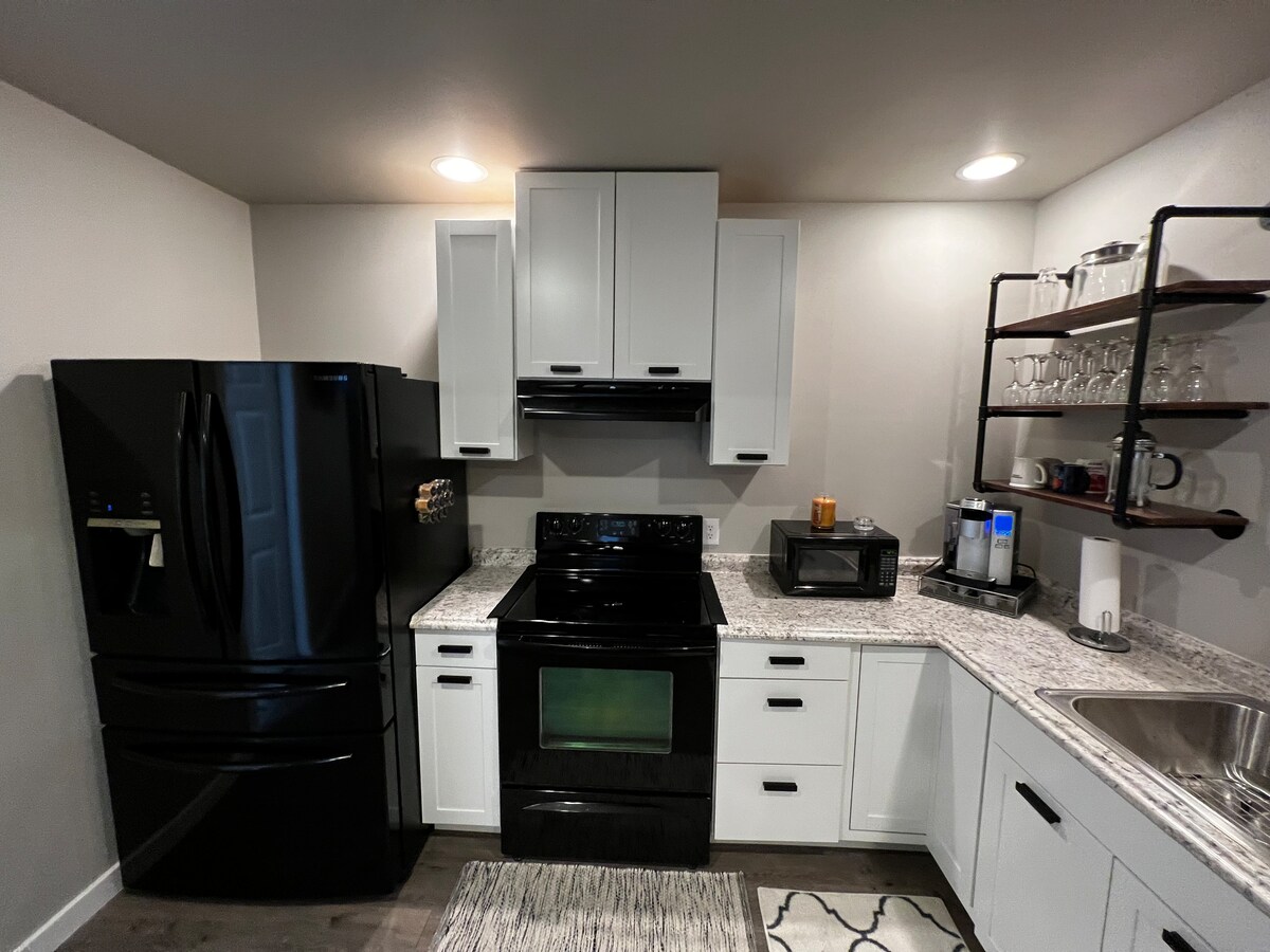 The Traveler features two bedrooms with full size and queen size beds, spacious living area with large flat screen TV, Wi-Fi, outdoor furniture in back patio, fully stocked breakfast kitchen and a full bathroom with shower. This home also has complimentary soda, coffee, tea, and bottled water, breakfast and snacks. We take great care in making everything perfect clean for our guests. At check-out, there are no beds to strip, laundry to wash, or floors to vacuum. We hope you book your stay today.