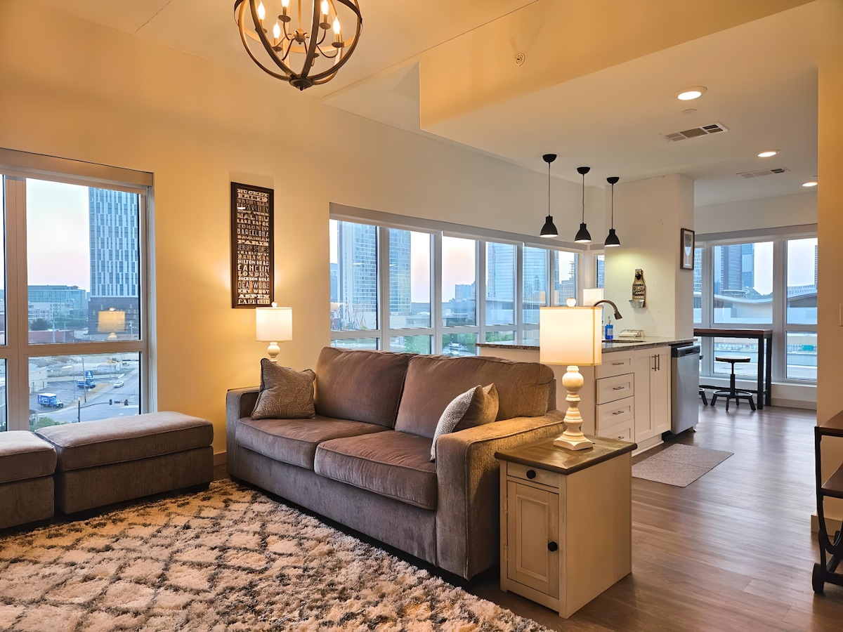 百老匯上的Beverly位於納什維爾市中心,提供奢華住宿體驗。 這間三房三浴公寓融合了復古魅力與現代設備。 位於伯恩厄姆大樓 (Burnham Building),享受度假村式庭院泳池、健身中心和時尚休息室。 距百老匯和布里傑斯頓競技場只有三個街區,大多數景點都在附近。 開放式客廳配備齊全的廚房、舒適的客廳和時尚的工業風裝飾。