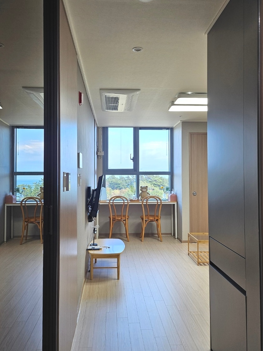 您好^^ 我們是當地居民,負責管理住宿。 當您進入入口時,美麗的海景將從客廳窗戶迎接您。 中午12點退房,讓您度過悠閒的上午時光 房間類型- 1.5房間(臥室+客廳、廚房+浴室) 高樓層海景 10樓可欣賞最佳海景 客廳電視可以觀看Netflix和YouTube等OTT影片。 藍牙音箱讓您隨心所欲地享受音樂 從KTX墨湖站/東海站和市外巴士站搭乘計程車5分鐘即可抵達 從房源步行3分鐘內即可抵達韓島海水浴場和海灘步道。 步行5分鐘內即可抵達美食餐廳,大樓一層的易买得24小時便利商店、易买得、食品市場、大創百貨、樂天電影院等,前往市中心非常方便。 您可以使用屋頂觀景台、健身中心和其他運動設施、投幣式洗衣房等大樓內的便利設施。(部分收費) - 其他 - 1. 入住當天,我們會向您發送指南訊息(前門數位門鎖密碼、房號和指南)。 2.住宿地址:江原道東海市漢島路136-4