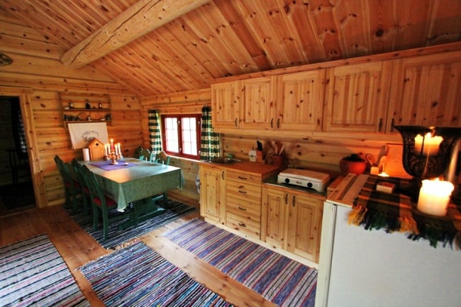 Beautiful handmade log cabin, situated lovely and unspoilt in a wooded cave near a small fishing lake. Fishing license fee included. Not neighboring cabins, so it's just you alone and the proximity to nature that applies. Welcome to relaxing days to this lovely log cabin. 8 foot rowing boat on the lake right in the vicinity. No electricity. Back to basic
