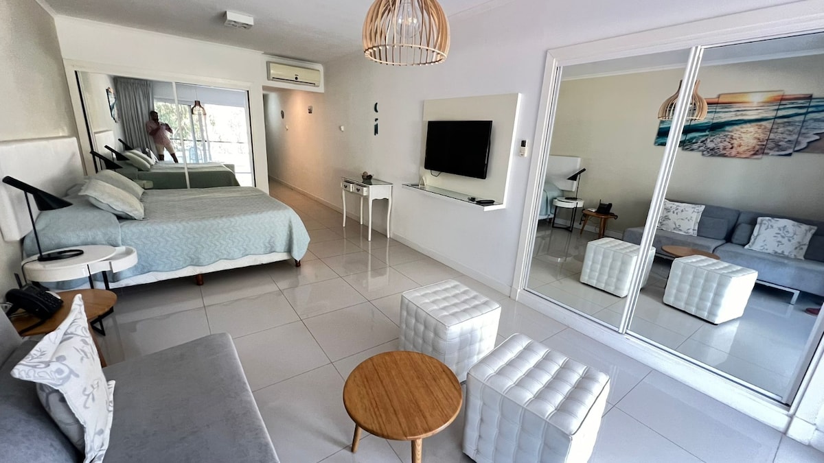 漂亮的3間房間、2間臥室、2間浴室、更衣室。 擁有烤架和露臺,位於埃斯特港索拉納斯度假村( Solanas Resort Punta del Este )內,提供清潔服務和每日白色衣服。 可使用綠色公園的所有設備與服務,並在季節性提供海灘服務。 不包括進入水晶潟湖( Crystal Lagoon ) ,需支付額外費用。 非常適合情侶和有小孩的家庭入住,提供出色的基礎設施和大量兒童活動。