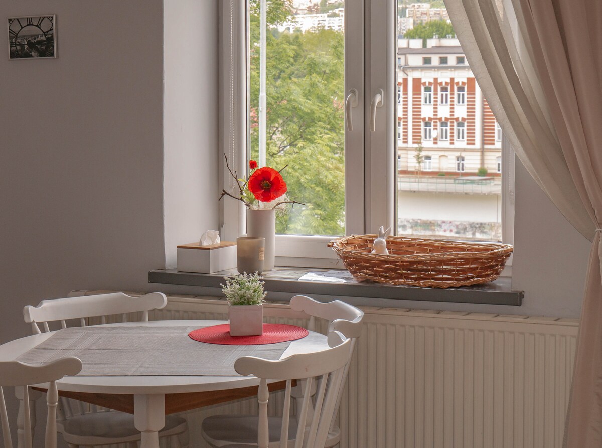 A bright and spacious 1-bedroom apartment in the heart of Przemyśl with a fantastic view of the old town. Situated in a traditional neighborhood, just a 3-minute walk from the train and bus stations, and close to the main market square and charming town park, this apartment is perfect for professionals and holidaymakers. It also provides a comfortable space for demanding guests to work remotely.