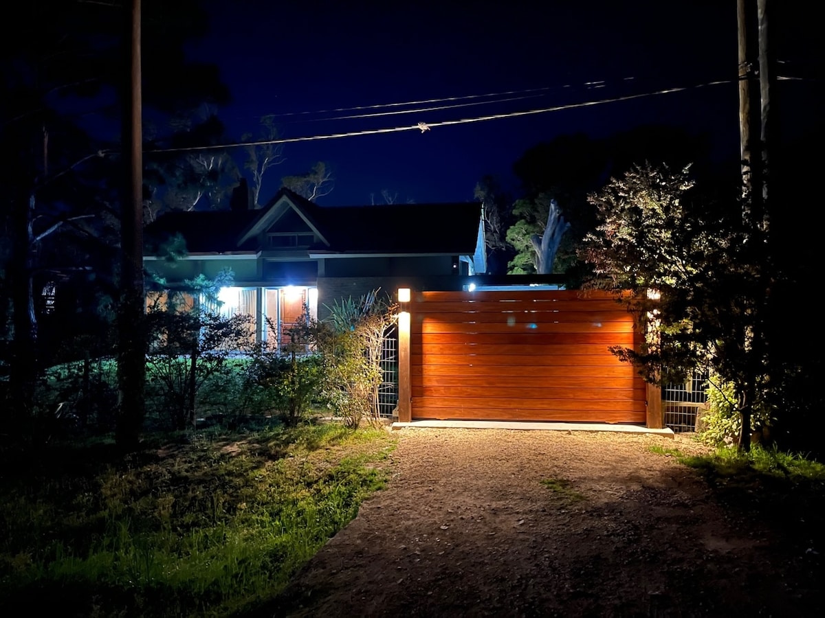 Relájate en este espacio tan tranquilo como elegante. Casa amplia y luminosa en barrio privado, a 4 cuadras del mar, rodeada de campo y sierras. Ideal para familias o grupos de hasta 8 personas. Cuenta con Tv, WiFi, estufa a leña, piscina climatizada (de octubre a abril), juegos para niños y paseos a caballo. Todo lo necesario para descansar, reconectar y disfrutar de la naturaleza sin resignar confort.