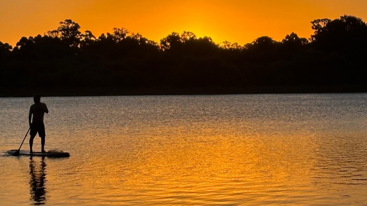 在河邊的寧靜天堂與家人一起放鬆。我們的房源坐落在Arroyo Solís Grande的大花園上。特別是高大的樹木提供充足的陰影和許多松果,可用於啟動烤肉或壁爐!可直接前往河邊和私人碼頭,您可以享受河邊活動,或步行500公尺即可抵達海灘。在享受烏拉圭烤肉的同時,從封閉或外面的露臺欣賞日落!現代化的廚房和多間客廳,無論在室內或室外都很完美。