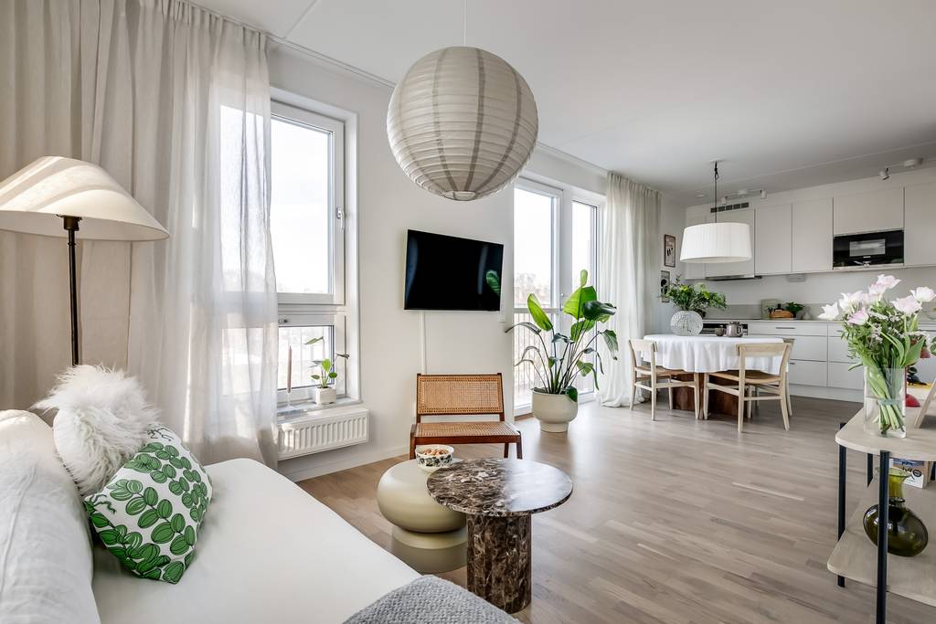 現代化的室內裝潢,有3間獨立的臥室和一間寬敞的起居室,非常適合晚餐和社交。公寓非常適合家人和朋友入住。提供嬰兒床、玩具和嬰兒椅。公寓配備了您所需的一切,包括柔軟的毛巾和高品質的床單。 這個社區很安靜,步行15分鐘即可抵達斯堪的納維亞商場和朋友競技場。如果您想探索斯德哥爾摩市,乘坐地鐵只需9分鐘。