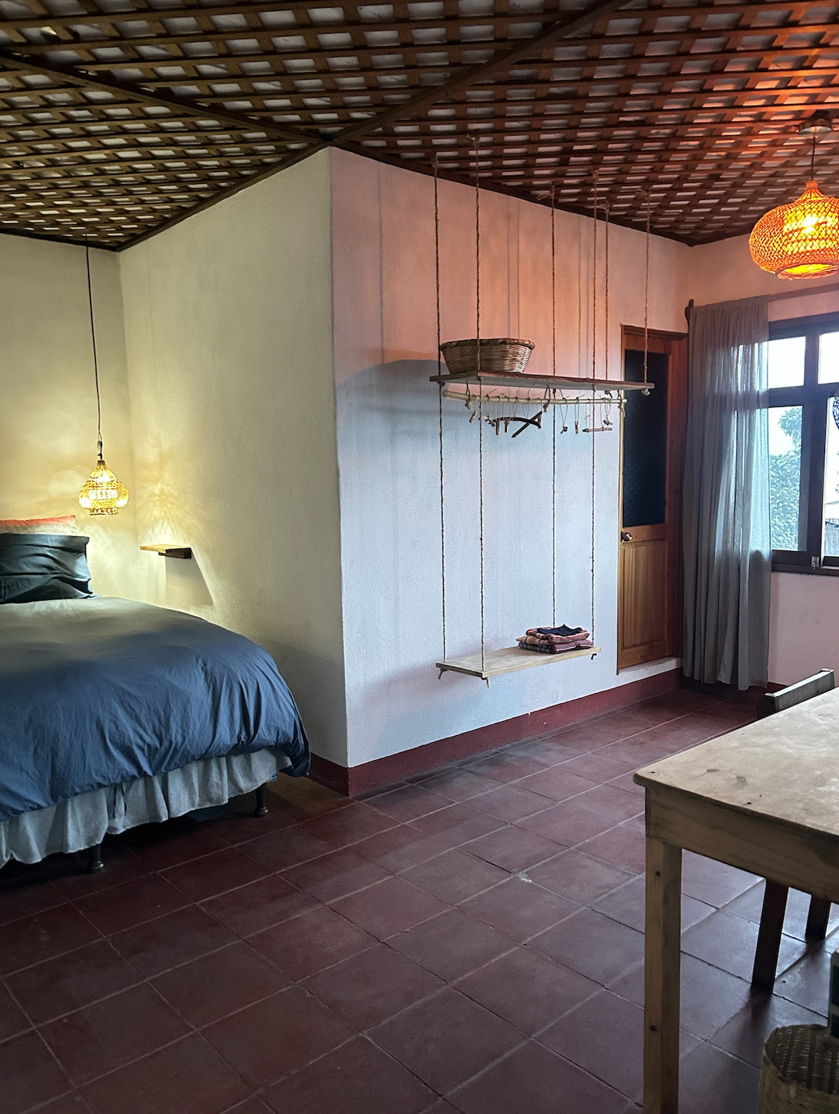 Relax in our cozy, high-end ensuite featuring a handcrafted King bed. Step out to the stunning views of Lake Atitlán, lush gardens, and majestic mountains, creating a peaceful haven for ultimate relaxation. Savor your meals in a shared elevated outdoor kitchen directly in front of the room, offering a perfect setting to enjoy the spectacular scenery. With private access to a tranquil pool, spa and a scenic garden pathway to the lake’s dock, your stay will be truly memorable.