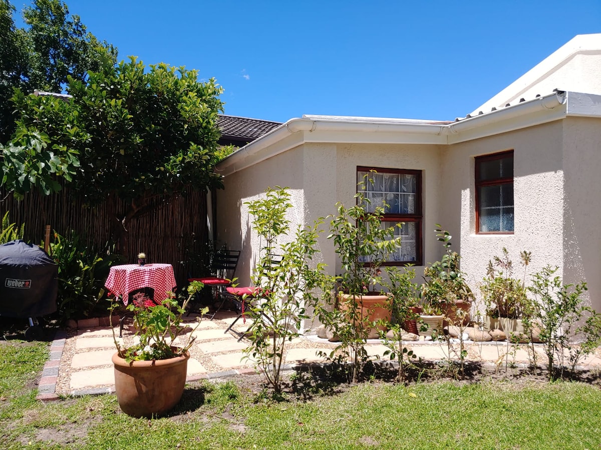 Situated in the quiet and central neighborhood of Stuarts Hill Somerset West. Separate entrance to our self catering Garden Cottage with access to your own private patio, barbeque and shared pool and tranquil green shady garden. Suitable for indoor and outdoor living. Free Parking provided inside secure gated property. You will be welcomed by your hosts Mark and Nicky. A drop box is provided for the keys when when you leave. Centrally located to Beach , wine routes & easy walk to restaurants.