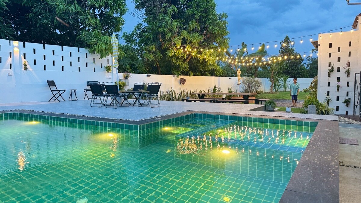 當您入住市中心附近的地方時,適合全家入住的住宿+活動 小型夜市/7-11 200公尺 社區商場Hatyai Village 1公里 中央節日Hatyai 5公里 宋卡王子大學2.8公里 Kimyong市場/李花園3.5公里 Big-C Extra 1.6公里 寬敞的起居空間 戶外活動按摩浴池/燒烤/兒童遊樂場 全屋空調、65 吋大螢幕電視、強大的WiFi、免費Netflix/Disney hotstar。 3輛車的停車位。有清真廚房。設備齊全。舒適、私密、安靜。賓至如歸。
