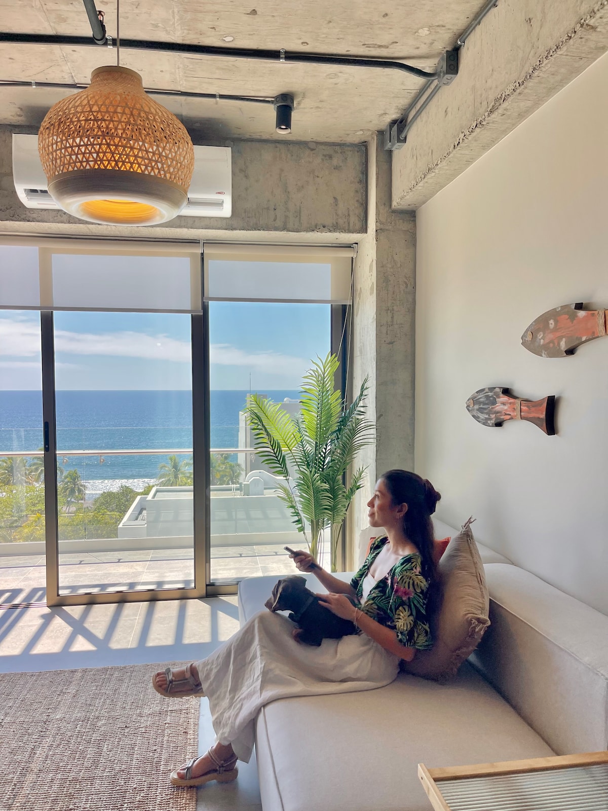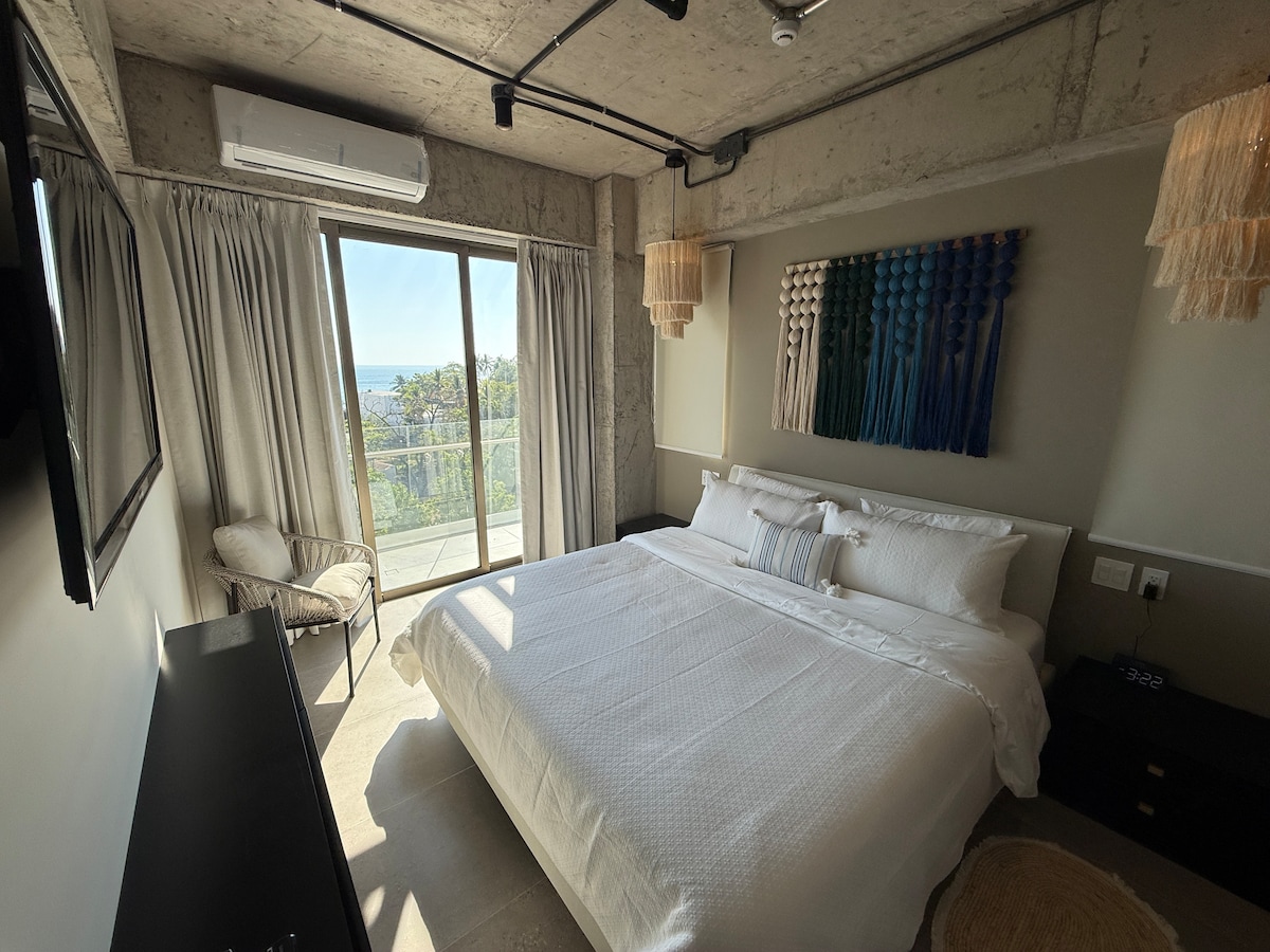 This 7th-floor, two-bedroom designer apartment features open views of El Zonte’s iconic wave and surrounding mountains. Thoughtfully curated with natural wood, mimbre, and minimalist bohemian elements, it offers a calm, elevated stay for surfers, families and travelers who value comfort, design, and location.