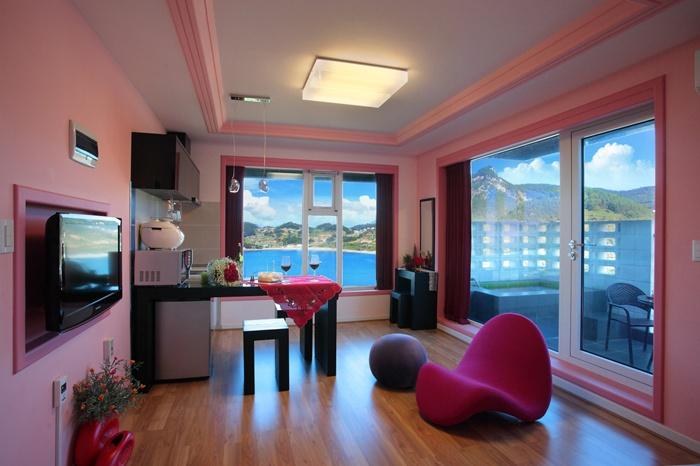 남해의 아름다운 경관 속 편안한 힐링숙소인 스파 노을룸