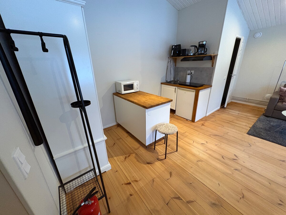 房間配有小廚房,面積25平方米。浴室配有淋浴。一張雙人床(120 公分寬)和一張雙人沙發床。住宿最多可容納2名成人,但也有空間可容納2名小孩。小廚房配有爐子、冰箱、微波爐、水壺、咖啡機。電視和WiFi。毛巾和床單包括在內。您還可以使用主樓的洗衣房。 我們對床單等收取 200 瑞典克朗的清潔費。不過,我們希望您在退房前進行一次徹底的清潔。