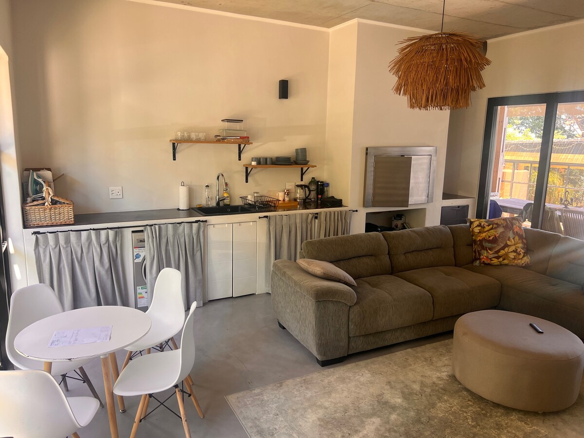 這個迷人的隱蔽處位於寧靜的私人花園中,邀請您放慢步調,放鬆身心。 沉浸在穿著清爽白色亞麻布的大床上,享受套房淋浴的舒適,在配有微波爐、酒吧冰箱和 Nespresso 咖啡機的舒適小廚房中享受如家般的感覺。 快速Wi-Fi、安靜的環境和浪漫的氛圍等待著。 按需提供熱水浴缸,每次R500,桑拿房每人R150 —非常適合一起放鬆身心。