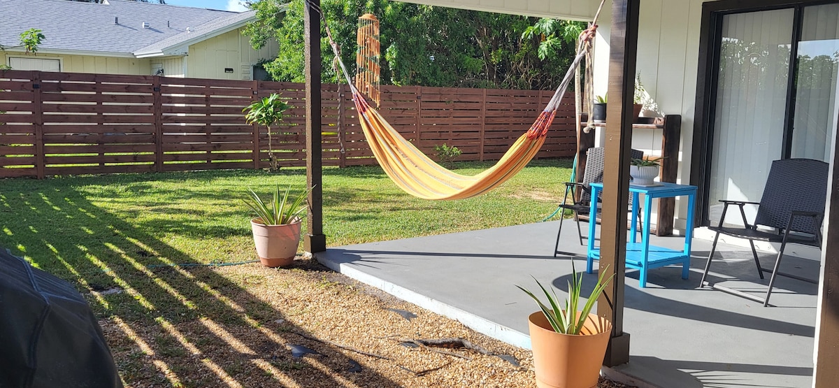 Forget your worries in this spacious and serene space. Beautiful, full of light, clean and comfortable full house in the Treasure Coast. In a very quiet neighborhood. Comfortable Queen bed. Pleasant patio with a gas grill for your BBQ and a hammock to read a good book or to take a nap. Kitchen completely equipped. Less than a mile from Intracoastal and supermarket. 12 minutes to South Beach Park by car, great restaurants and the Riverside Theater. Botanical Garden in less than 3 miles.