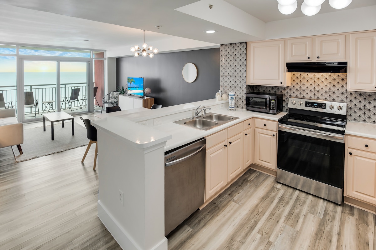 明亮、現代化的海濱度假勝地,一切都感覺簡單舒適。 享受開放式景觀、乾淨的設計和輕鬆的空間,讓您在海邊放慢腳步。 默特爾海灘排名前 5% 🌴 海濱豪華 — Seawatch 度假村 1003 北塔 • 🌊從地板到天花板的海景,讓海灘感覺在前面和中央 •🛋明亮、現代化的起居空間,設計感覺開放、簡單和舒適 •🛏獨立臥室,配有舒適的加大雙人床,讓您安心入睡 • 🍳 設備齊全