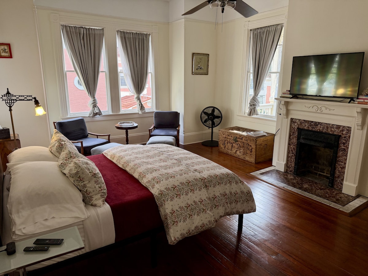 成為Airbnb超讚房東6年! 帶著浪漫或工作..逃到門口的Savannah,25分鐘即可抵達美麗的海灘。 獨立浴室、冰箱、咖啡機和大型智慧電視。 我們靠近薩凡納最好的餐廳和酒吧。步行4分鐘即可抵達Foxy Loxy咖啡館(很棒的地方) ,步行12分鐘即可抵達福賽斯公園。 請注意:套房位於二樓,有樓梯。 中央過濾空氣和暖氣。 不適合寵物或年幼兒童入住。獨立房間,有鑰匙。