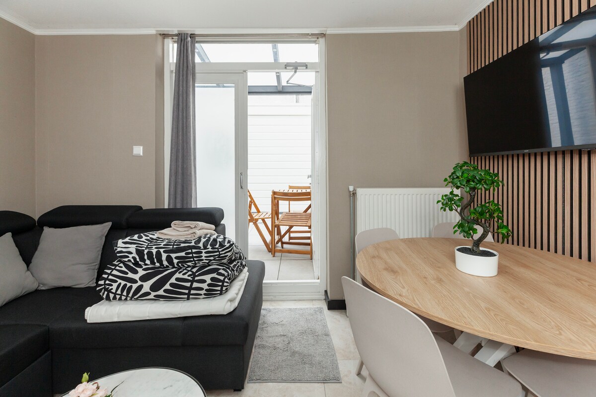 這間現代化的單間公寓提供21平方公尺的空間。 最多可入住兩人,配有雙人牀( 160x200 )和現代化的浴室,是體驗海牙的完美方式。 還有設備齊全的廚房和餐桌,因此您將擁有所需的一切,以獲得最大的舒適度和減輕壓力。