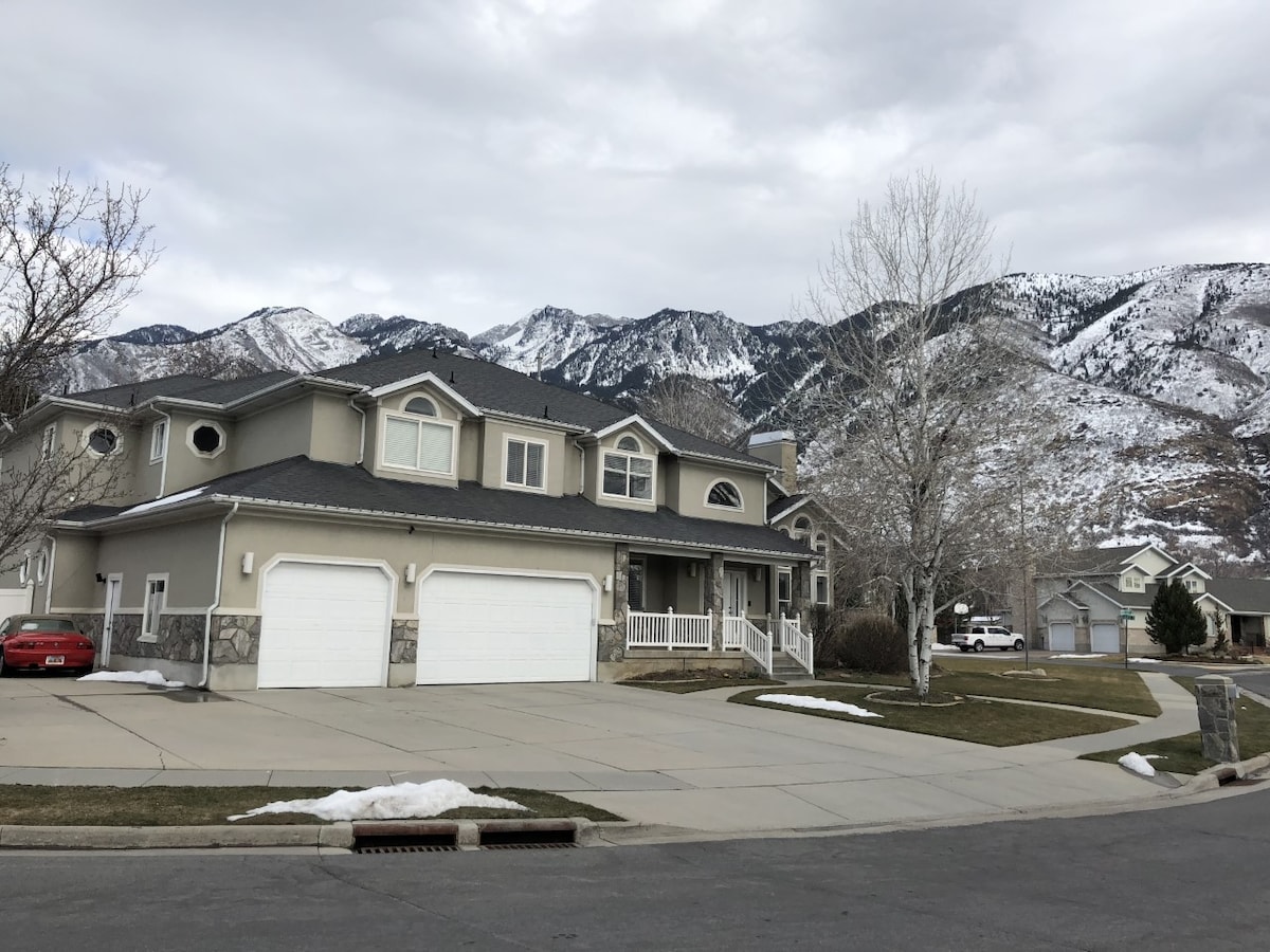 You’ll love this get-away! It's nestled next to Lone Peak mountain near the mouth of Little Cottonwood Canyon - 15 minutes away from Snowbird/Alta ski resorts. Our place is good for couples, solo adventurers, business travelers, and families. You will be staying in the entire basement of our home, but still have lots of natural light and an indoor basketball court.
