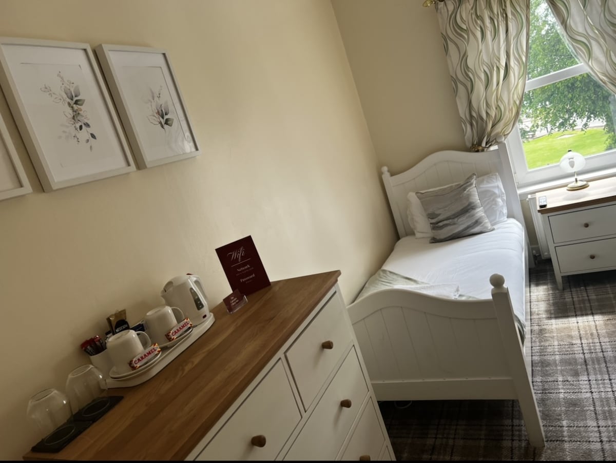 4間客房1間雙人房3張單人牀可供出租。 客房寬敞,每間客房都有大套房,我們提供雙人房或雙牀房。 所有房間配備電視、免費WiFi和電話費門戶。 提供熨鬥,以及泡茶和咖啡的設備。