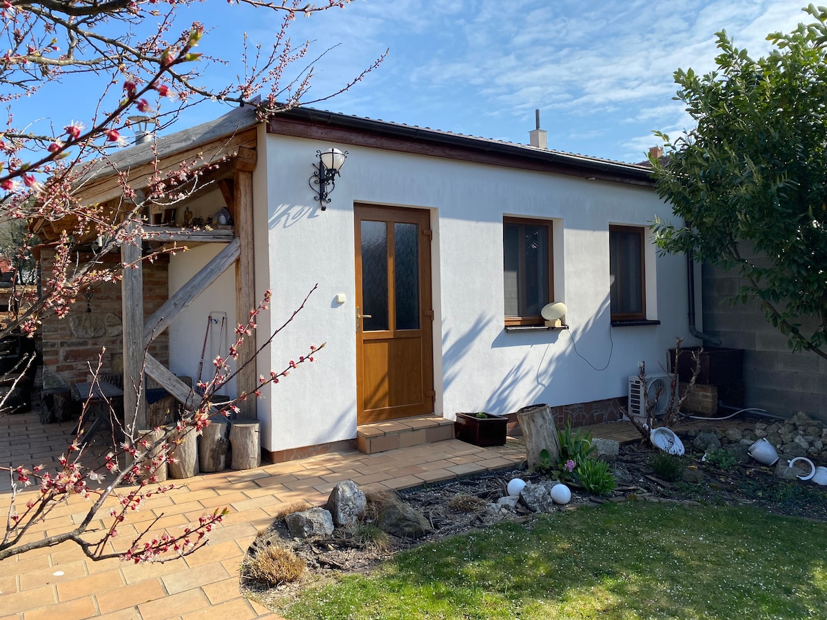 在米庫洛夫( Mikulov ) ,您會發現自己身處一座古老的城鎮,四周環繞著石頭、丘陵葡萄園和歷史建築地標。 您的客用住房位於城牆旁,位於一棟1700年老房子的後院。 從您的臥室露臺上,您可以通過螺旋樓梯進入,您將俯瞰舊城區的歷史屋頂。 在開放式廚房和小型泳池中,您可以在夏天放鬆身心。 情侶和小家庭可以在這裡度過美好的時光。