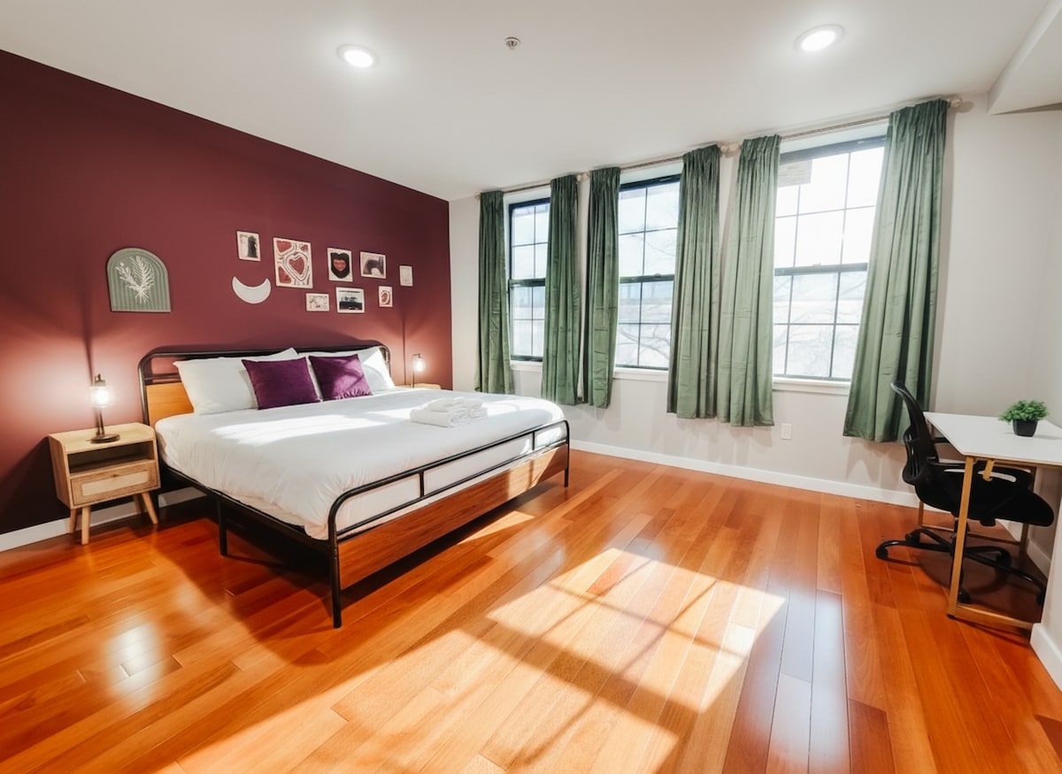 Discover a unique retreat in an updated Philadelphia warehouse adorned with vibrant graffiti murals. This artist’s dream space features colorful decor, antique wooden doors, and industrial charm, creating an inspiring atmosphere for creativity. The 1-bedroom flat offers a spacious shower, a chef’s kitchen, and cozy furnishings for a creative and comfortable stay. Overlooking lively 5th Street, it’s surrounded by bars, restaurants, and breweries, with plenty to explore nearby.