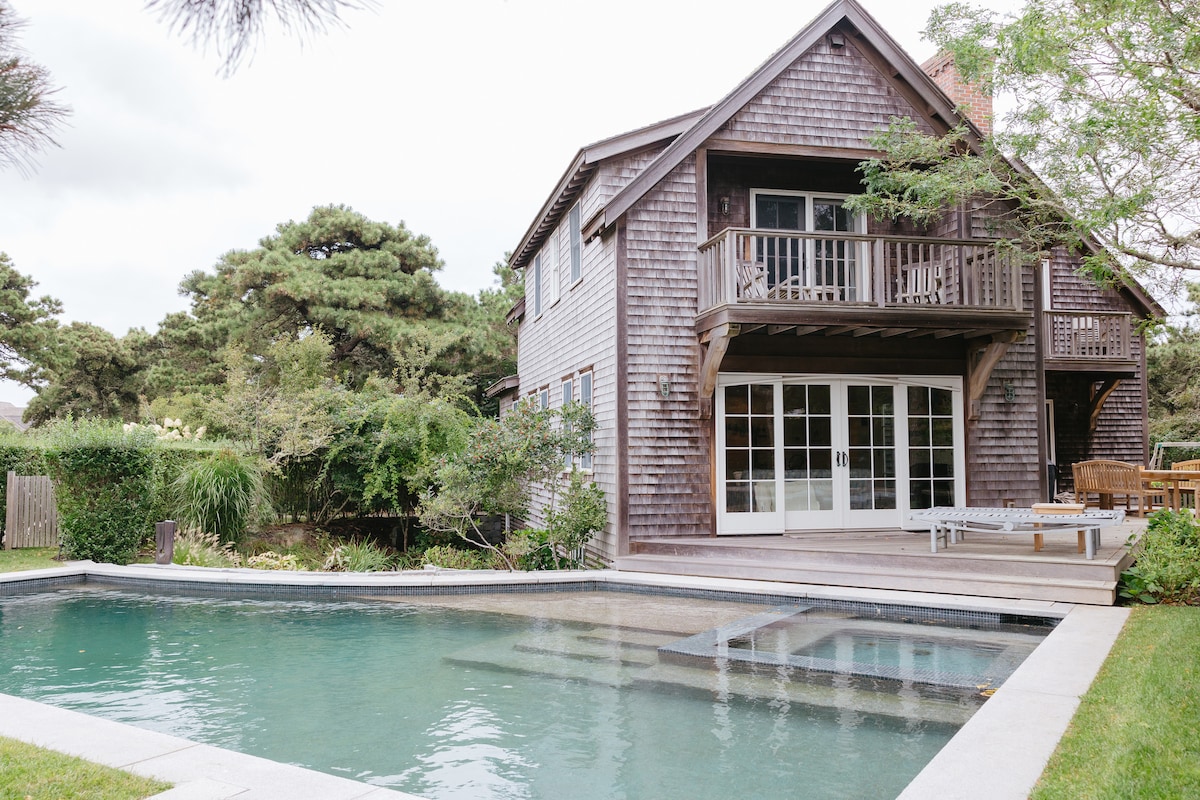 經典的楠塔基特島與現代衝浪奢華相遇。 在雪松屋瓦和繡球花後面,是一個設計師度假勝地,有Restoration Hardware裝飾、Casper床和Dan Lemaitre藝術品。 毗鄰野生動物觀賞和隱私保護區,但距離城鎮不到1英里。 包含免費使用 EZIA Athletic Club 健身房! 請在1/18前發送訊息給我,以獲得汽車渡輪協助。 請注意:專業員工住在獨立的地下室單位,確保住宿愉快。 安靜享受是優先事項;禁止舉辦派對或活動。