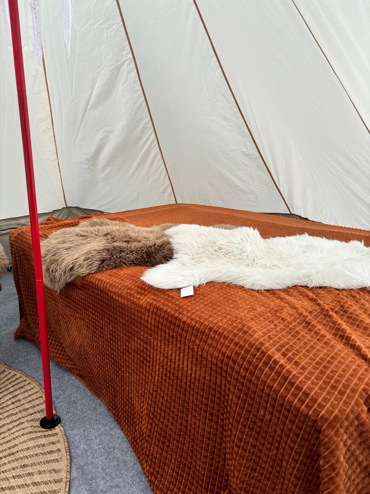 Lad dit indre ur-menneske og dit moderne jeg komme i kontakt med hinanden i en glamourøs og afslappende glampingoplevelse. Vi sørger for de mest nødvendige ting til camping, som madrasser, puder, dyner, båludstyr og indendørs teltovn som også kan bruges til madlavning ved dårligt vejr. Vi tilbyder også fri afbenyttelse af privat spa som står lige uden for ens telt.