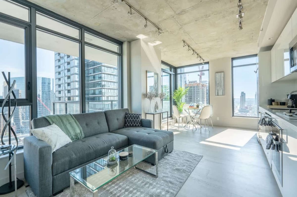 Downtown Living | Stylish High-Rise with Panoramic Views + Free Underground Parking | STEPS from Dining & Entertainment | Spacious Stay - FAST WIFI