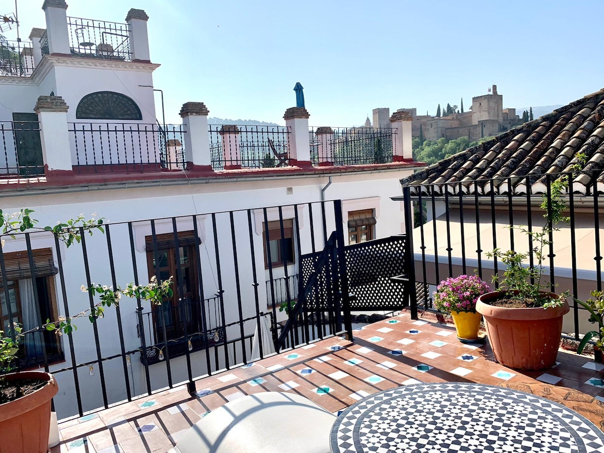 🏡位於阿爾貝辛中心的迷人房子 四層新修復的獨立樓層,使用工匠材料。 配備熱泵的空調·露臺可俯瞰阿爾罕布拉宮 🏡 Mudejar Viewpoint ·頂樓公寓 迷人的Mudejar單間公寓,非常適合景觀和真實性的愛好者。 它有一間全套衛浴、一間有空間準備食物的小房間、一間明亮的臥室,並可直接通往社區露臺,您可以在那裡欣賞令人難忘的全景。