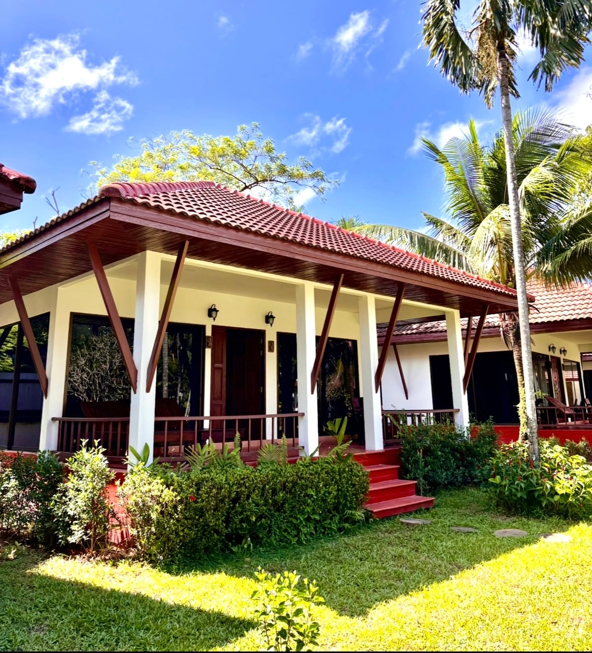 您會喜歡我們的空調平房的環境,周圍有橡膠樹和椰子樹,靠近大海,您可以觀賞當地人過日子,感受社區的一部分。 您還可以免費使用沿海幾百公尺的泳池和健身房。 如果您想了解更多資訊,請隨時向我們發送訊息,我們將非常樂意協助您