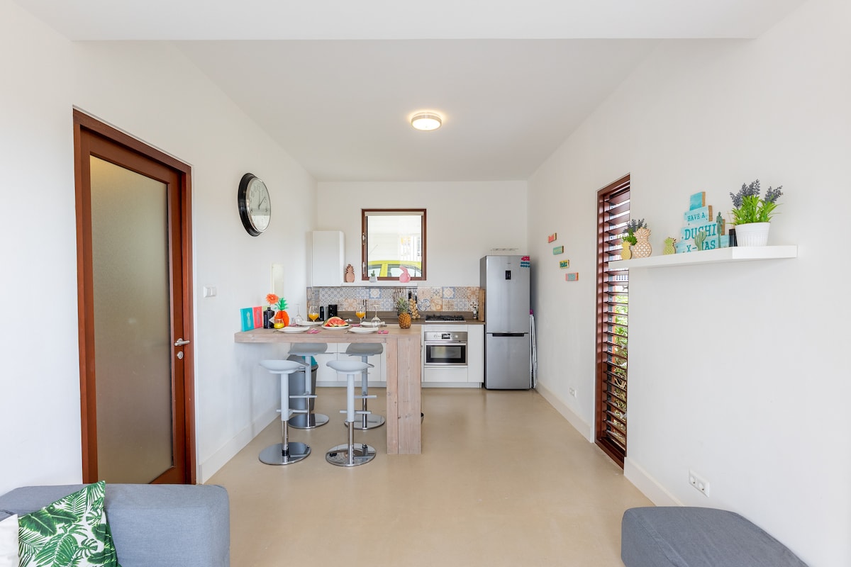 在島嶼陽光下,在家中醒來,享受陽光和海風。 TuKas.221.1是一個溫馨的隱蔽處,擁有質樸的魅力、私人小型泳池和熱帶庭院,由當地房東設計,他們將家庭住宅的一部分變成了庫拉索島的靈魂度假勝地。 走進去,感受島嶼的平靜節奏:在微風中烹飪、在開放的天空下淋浴,並在充滿自然光線的空間中放鬆身心。 已訂滿?點擊我們的個人資料,探索我們附近的第二個島嶼房源。