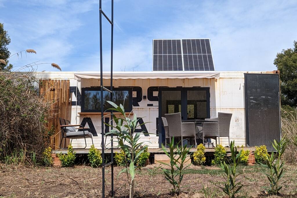 This Tiny House made from a shipping container is your own private paradise surrounded by lush forests and just 800m from the beach. Wake up to the sound of birds singing and wind rustling through trees, enjoy stunning forest views through large windows, and recharge with an off-grid lifestyle running on solar panels and water from a well. The fully equipped kitchen with breakfast bar, comfortable bedroom, and indoor and outdoor shower provide everything you need to relax and enjoy.