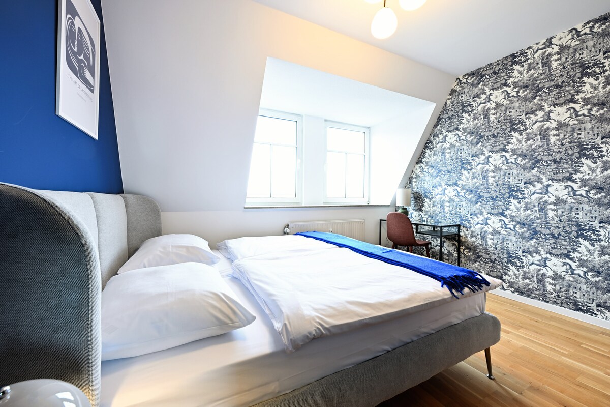 Genieße ein stilvolles Erlebnis in dieser zentral gelegenen Unterkunft. Ideal für Kollegen, Freundesgruppen und Familien. Diese großzügige Wohnung bietet drei geräumige Schlafzimmer mit Doppelbetten, die auch in jeweils als Einzelbetten aufgestellt werden können. Zusätzlich gibt es eine voll ausgestattete Küche mit Essplatz, ein großes Badezimmer mit begehbarer Dusche, großem Waschbecken, WC sowie Waschmaschine und Trockner. Wunderschöne, lichtdurchflutete Altbauräume.