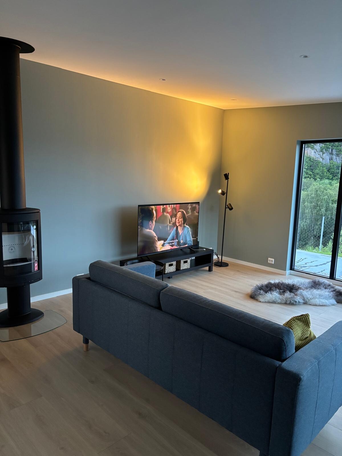 我們出租了我們在Viga的古怪房子,在Spind。此房源建於2018年,標準很高。 一樓有走廊、洗衣房、配有沙發牀的電視休息室、衛浴和三間臥室,均配有2張單人牀。 二樓有一間大廚房、客廳、餐桌、電視區域、配有雙人牀的臥室和大浴室。 外面有一個難看的露臺,有很多起居空間、各種座位羣組、按摩浴缸和火坑,景觀很美!