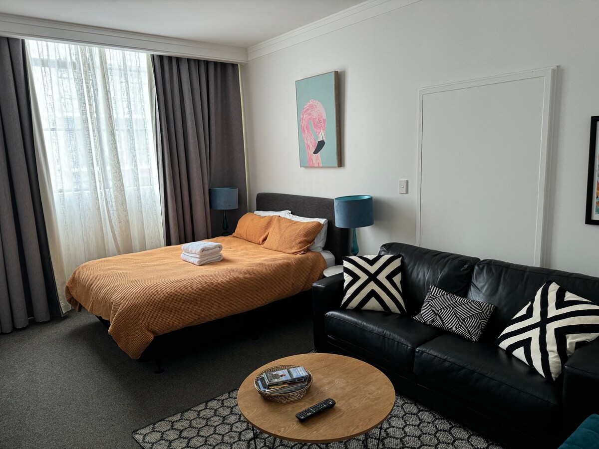 寬敞的角落40平方公尺的單間公寓,位於奧克蘭中央商務區的Heritage Hotel Tower Wing ,步行即可抵達Viaduct Harbour ( 7分鐘)、Wynyard Quarter ( 15分鐘)、Britomart ( 9分鐘)、渡輪碼頭( 10分鐘)、Queen Street ( 7分鐘)和SKY CITY ( 3分鐘)。 注意:我們不提供提前入住或延遲退房,因此請勿發送相關申請。 去看看我的旅遊指南,了解當地推薦。