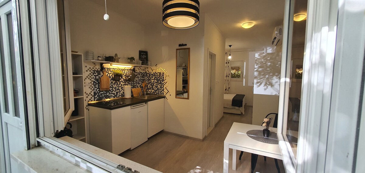 Brand new and very comfortable studio apartment in backyard of old stone house in center of Split, with free parking space, beautiful terrace in natural shade of trees, 10 minutes away from beaches (Bacvice), Diocletian's palace, etc. Welcome!