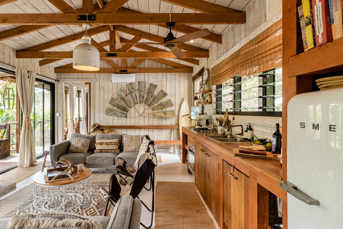 牽著我的手,讓我帶你穿過森林到水邊…… Water & Woods是一個自炊式的舒適小木屋,坐落在樹冠下,距離Purling Brook Falls徒步道僅幾步之遙。這是您放鬆身心的機會……或是活躍的機會——周圍是冈瓦纳雨林的特殊部分,距離黃金海岸那些明亮燈光的喧囂不到50分鐘。是的,這就是您在早餐吧台看到的。