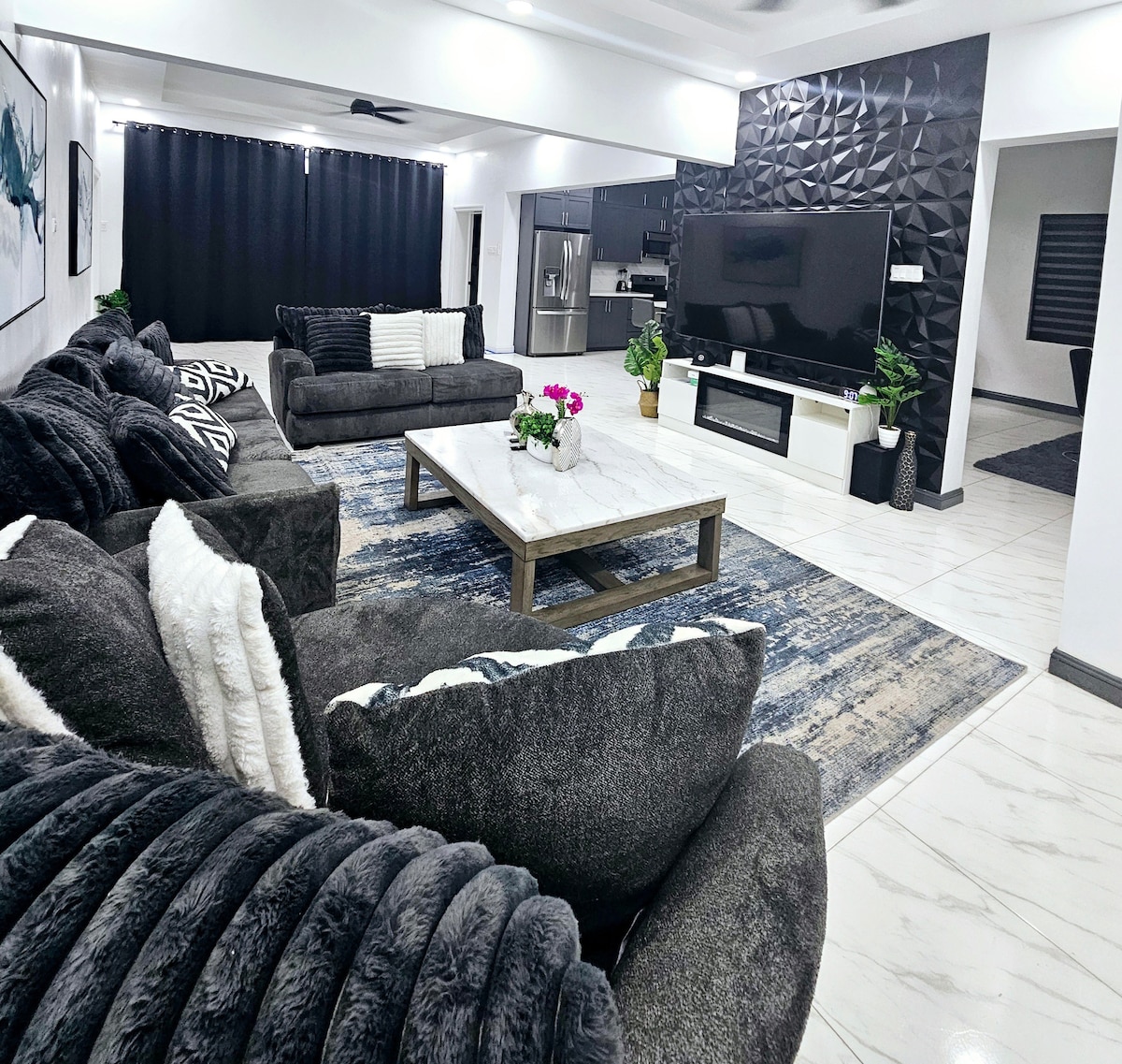 We are pleased to welcome you to our exceptional vacation residence, ideally situated in Tower Isle, mere minutes from Ocho Rios and Pleasure Cove Beach. This prime location offers an unparalleled experience for up to six guests. The property features three generously sized bedrooms and two bathrooms, providing an optimal balance of comfort and luxury. Upon entering the residence, you will be greeted by an inviting and stylish interior. Hot water is available in the shower.