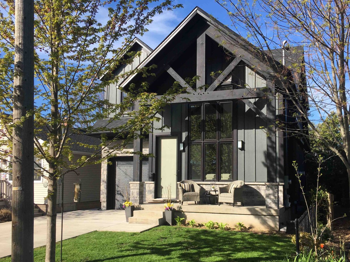 入住剛剛翻新的現代平房,遠離塵囂,享受尼亞加拉酒鄉的寧靜美景,距離瀑布只有 15 分鐘路程! 享受雲端般的床鋪、Restoration Hardware 家具、四臺智慧電視和電動車充電站的便利,盡享極致的舒適和奢華。您可以到樓下的媒體室放鬆,那裡有義式蘇打水機和遊戲桌,或者到後院放鬆,那裡有營火設施、羽毛球網、吊床和烤肉設備,讓您在戶外享受難忘的用餐時光。