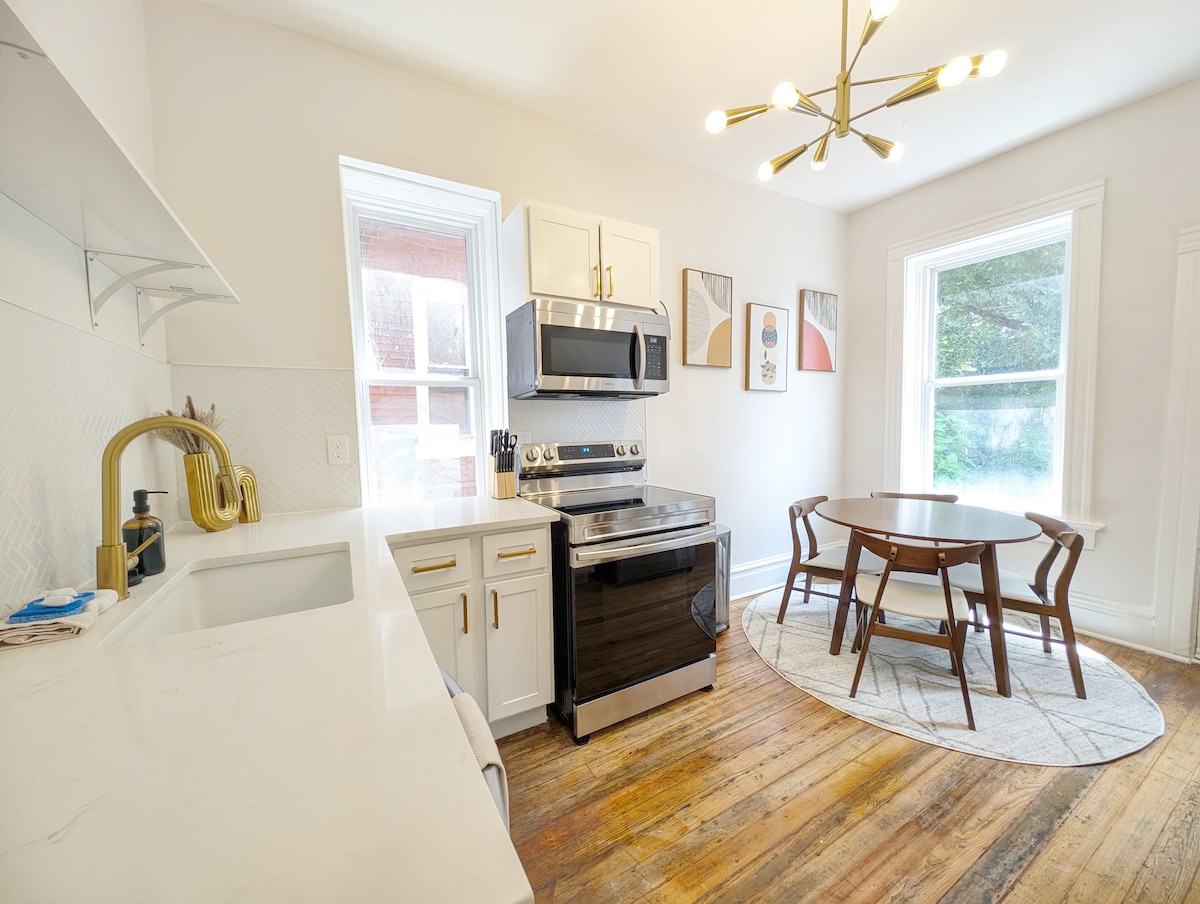 這間全新翻修、家具齊全的單臥室單浴室公寓位於理想的塔林公園南部街區的歷史悠久的房屋的低樓層。 您可以使用完全圍欄的雙車位後院,步行即可抵達許多當地企業。