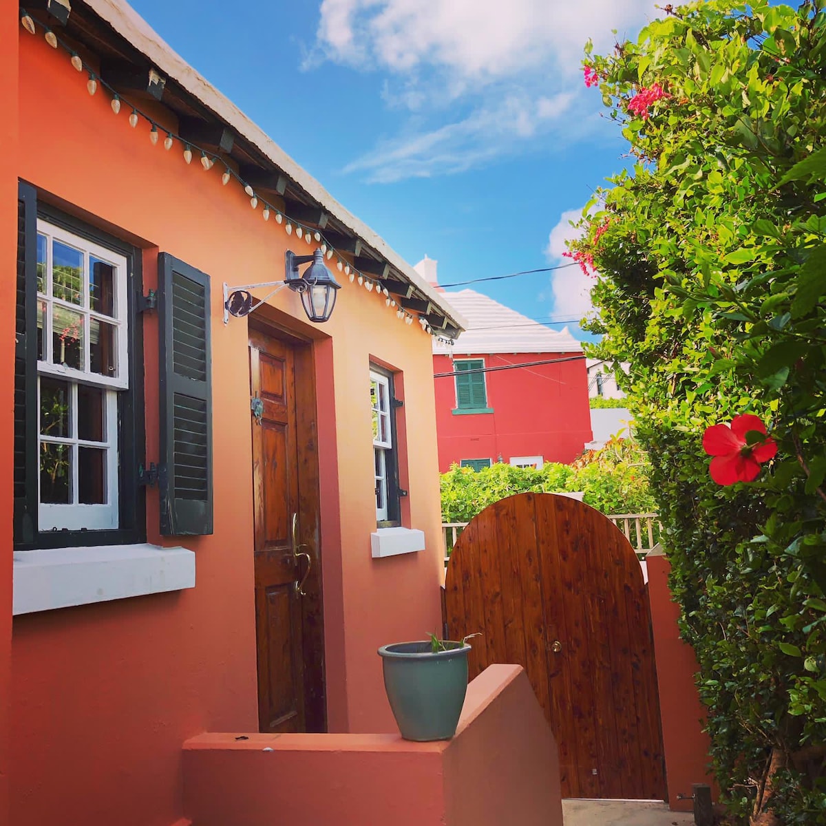 Kate的單間公寓位於聖喬治舊城區。建於1700年代,Kates的房子有高托盤天花板和木樑。打開窗戶,感受微風。在Kate的房子旁邊,我們歡迎來自世界各地的遊客。 https://www.gotobermuda.com 我們目前只接受已完全接種疫苗的房客。前往Gov.bm了解更多資訊