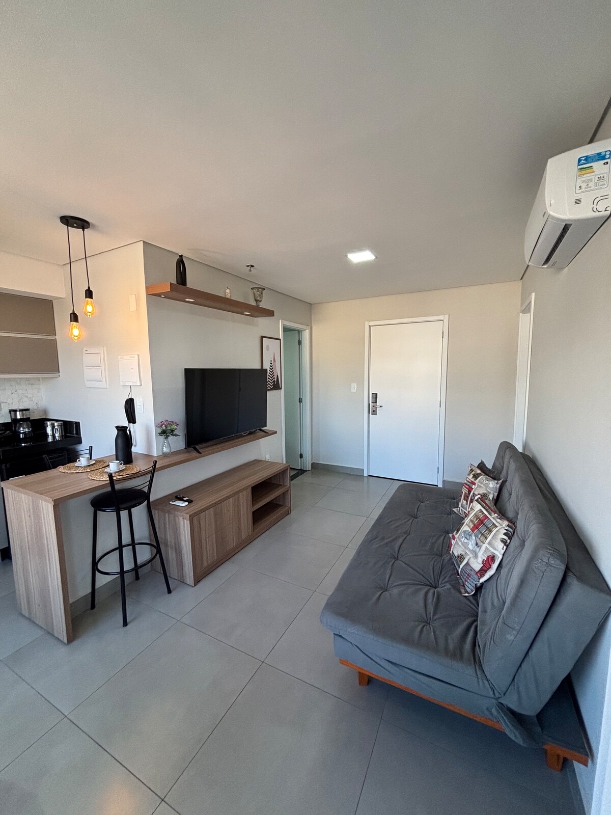 這個獨特的房源有自己的風格。 靠近最好的餐廳和酒吧、長廊,距離Parque das Águas入口20公尺。 大樓有漂亮的遊泳池、桑拿房、健身房、派對室、卡片室和美麗的禮賓/接待處。 廚房配備客廳和套房內的所有電器和智慧電視。