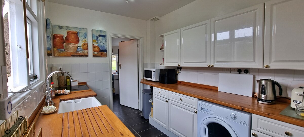 Bailando Con Dios is a classic detached 1930's family home situated in the quiet parish of St Martin and conveniently located inbetween Town and the St Martin Village. The accommodation comprises an entrance hall, a spacious lounge with multi-fuel stove, a separate dining room with mutli-fuel stove and double doors leading onto a traditional lean-to conservatory, kitchen and separate utility/larder and WC. On the first floor there are two bedrooms as well as a family bathroom and a separate WC.