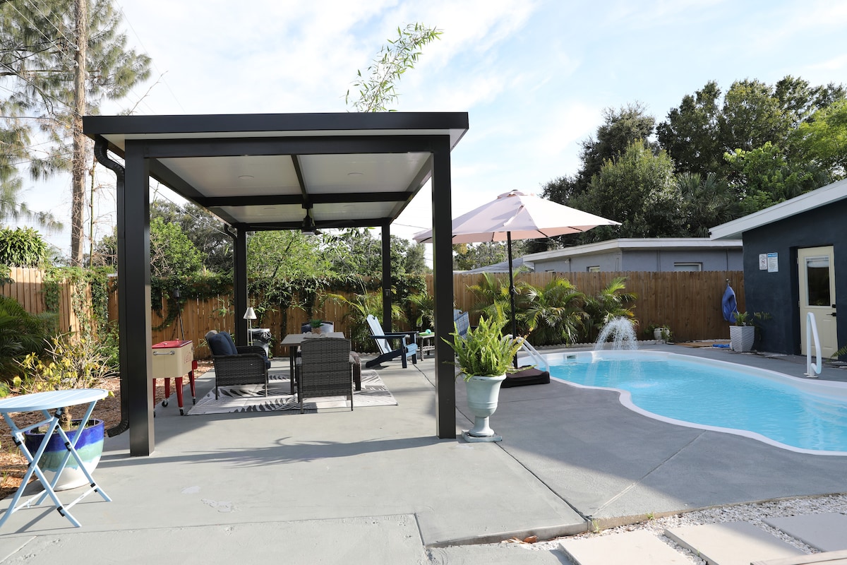 波西米亞風格平房/帶後院綠洲*泳池和按摩浴池*