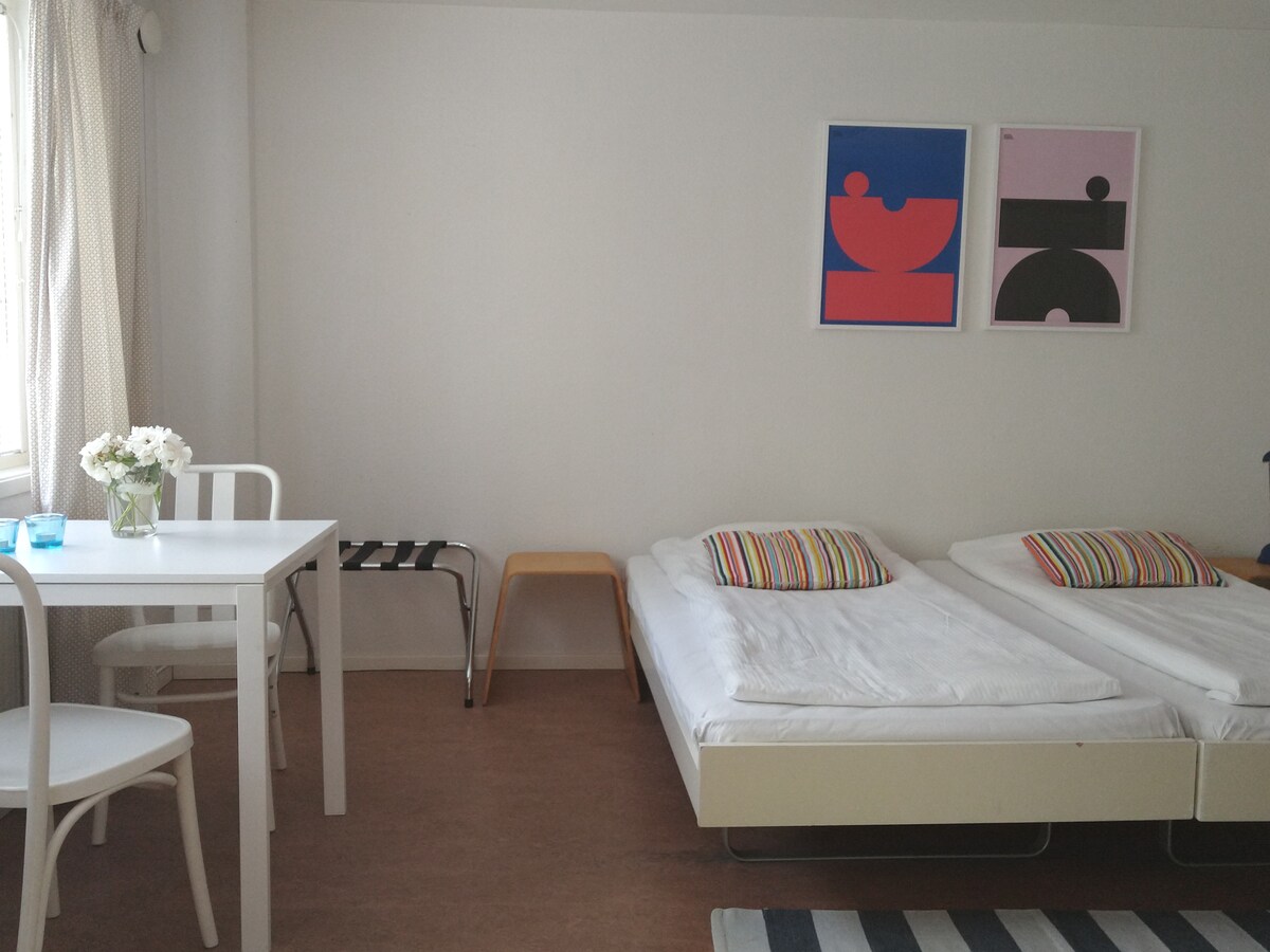 這間最近改造的自助式公寓/小屋,配有美麗的天窗,配備舒適方便的住宿所需的一切。 隆德所提供的一切,包括美麗的Stadsparken ,就在您的門口。 臥室配有120釐米的牀,休息室配有一張140釐米的沙發牀,最多可提供4人非常靈活的住宿。